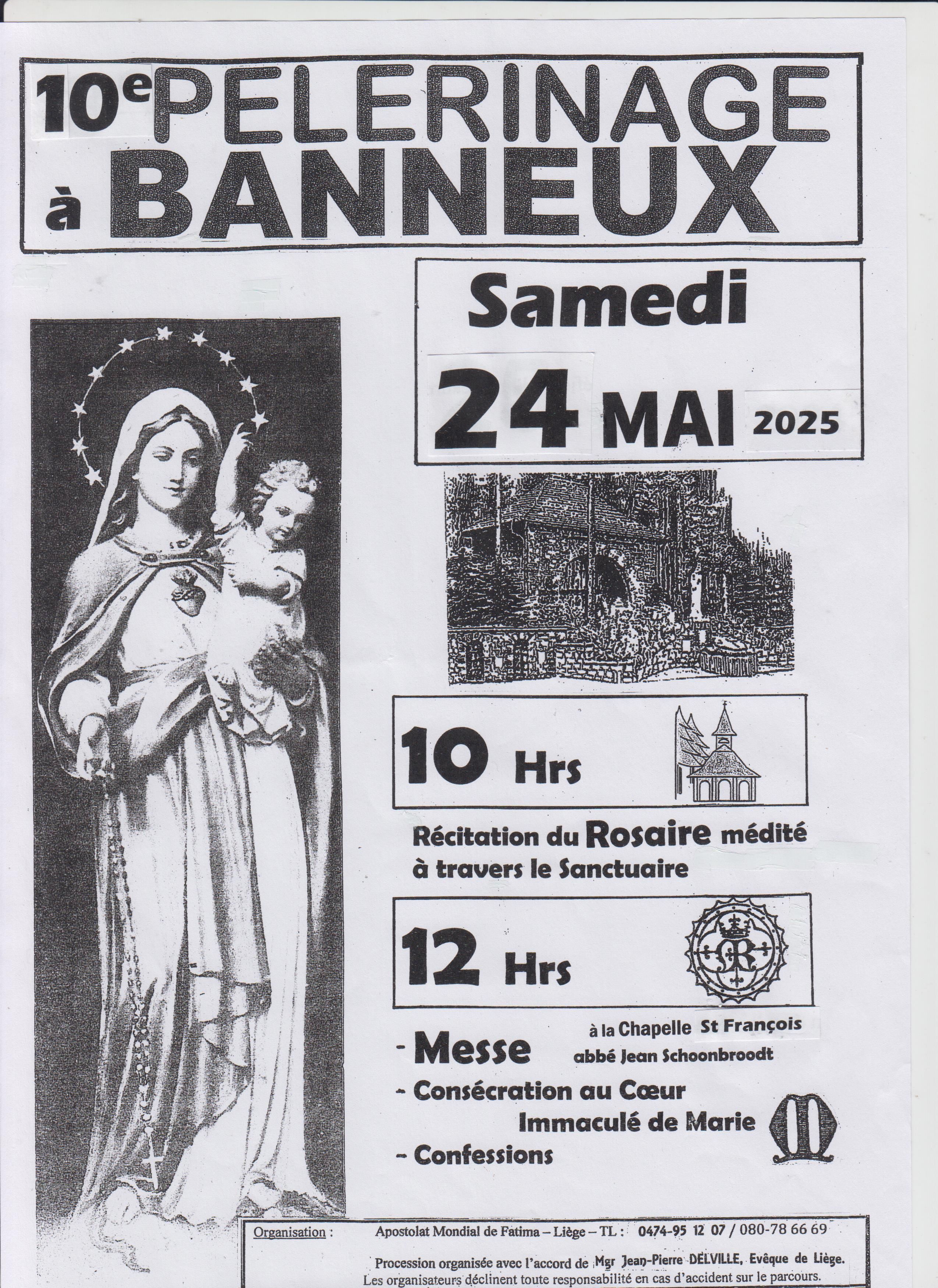 Le pèlerinage Banneux-Chèvremont aura lieu le 24 octobre 2025